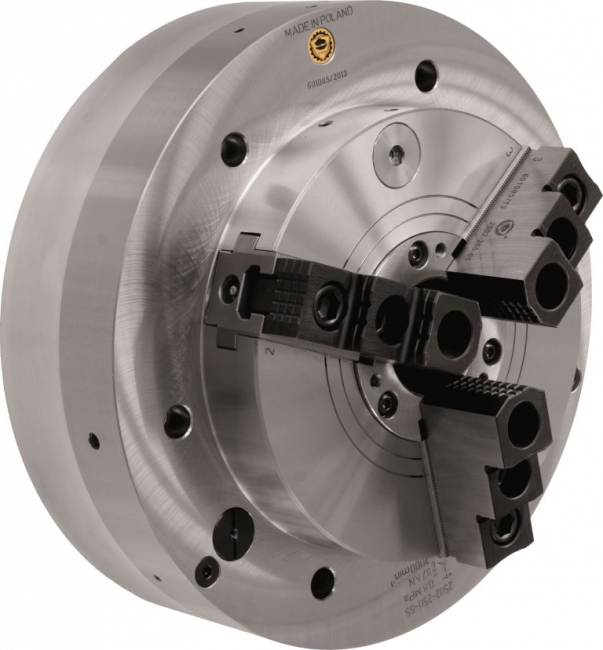 All BISON power chucks can work on the lathe spindle ensuring mounting of two chucks on its both ends. The double spindle configuration increases clamping force and clamping stability.